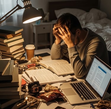 Você fica desesperado porque deixou tudo para a última hora novamente. Aquela sensação de que "não vai dar tempo" te paralisa.